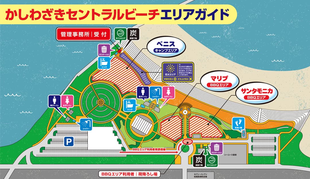 *キャンプ・バーベキューエリアへの車の乗り入れはできません。エリア内の駐車場をご利用ください。駐車場には乗用車 / トレーラー / キャンピングカー / バイクの乗り入れが可能です。